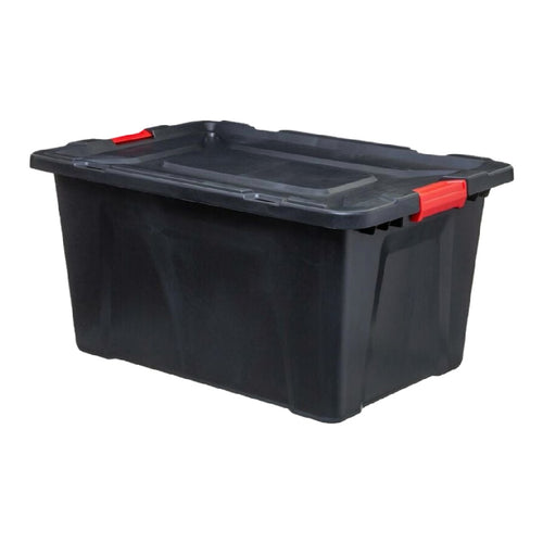 Boîte de rangement en plastique noir avec couvercle et poignées